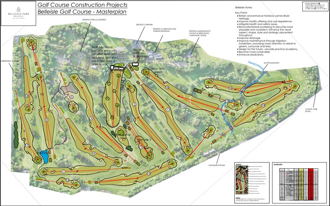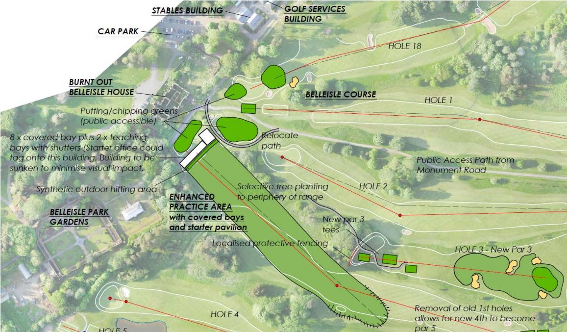This proposal focuses on essential course modernisation and the introduction of a new practice facility, while retaining the historical James Braid heritage and existing clubhouse structures.